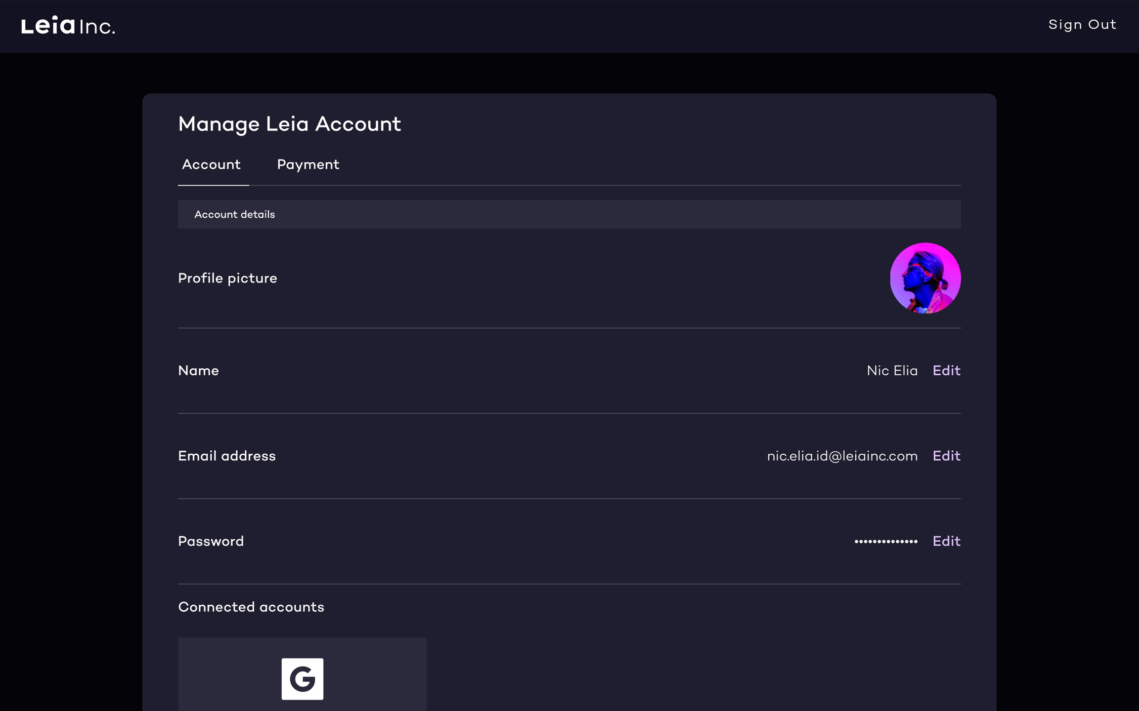 Leia Account